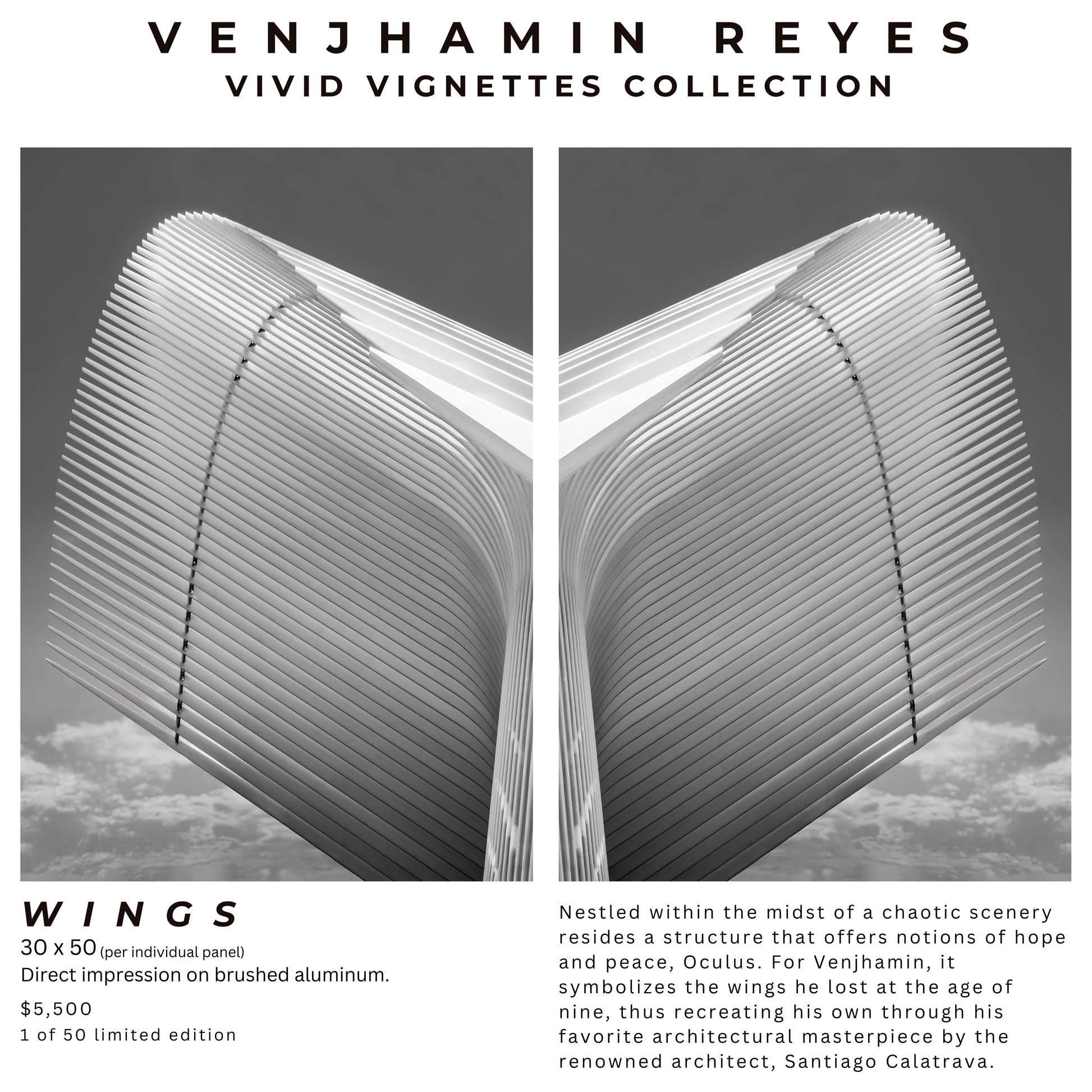 Wings unfolds in the heart of chaos, where the Oculus rises like a quiet prayer of hope and peace. For Venjhamin, this structure carries a deeply personal meaning, symbolizing the wings he lost at a young age. In this work, he does not simply remember that loss, he transforms it, recreating his own wings through the elegant beauty of Santiago Calatrava’s architecture. The sweeping curves and luminous openness of the Oculus become an act of healing, a whisper of freedom reclaimed, and a testament to the soul’s ability to rise, even after being broken.